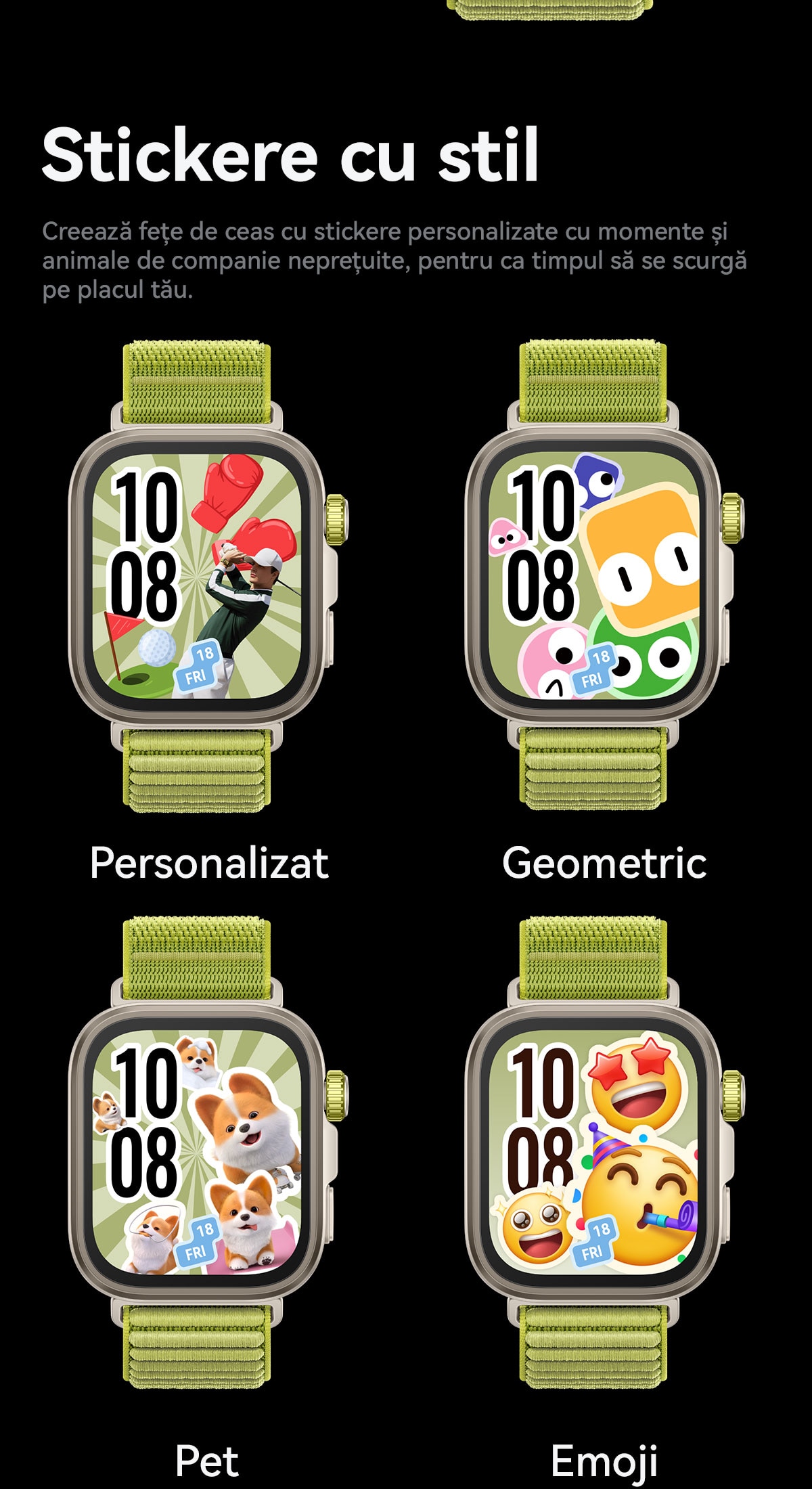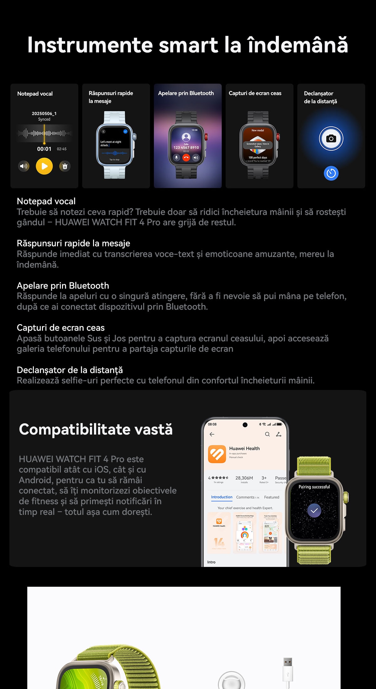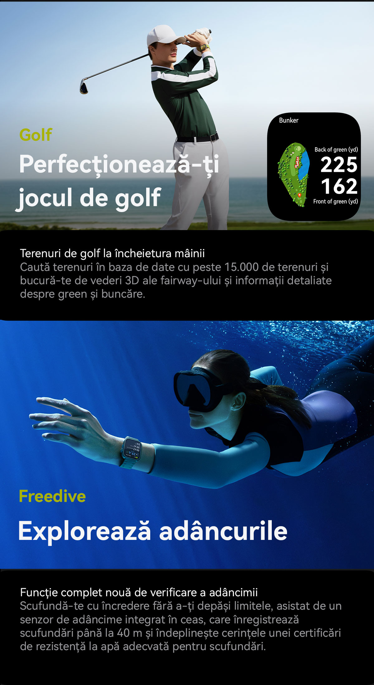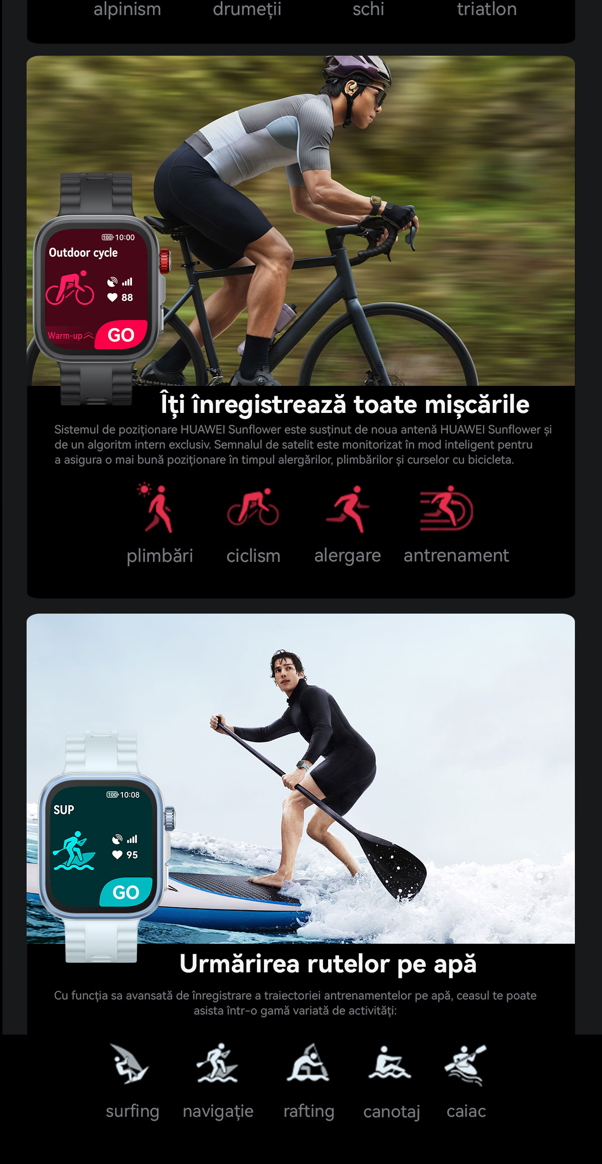 | Functii | Rezistent la apa Alarma Vreme Notificari Microfon Difuzor Moduri de antrenament |