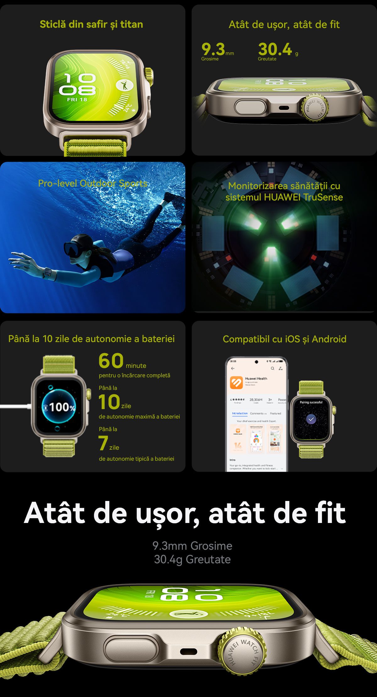 | Senzori | Barometru Lumina ambientala Ritm cardiac Accelerometru |